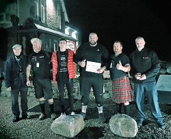 A fantastic end on 5/11/21 to the Famous Dinnie Stones saga for the 2021 season. Andy Black, Scotland`s strongest man managed a fantastic walk of 4ft 2ins. Andy's feat was witnessed by Brett Nicol, Jim & Rosemary Splaine, Lydia Nicol & the crowd of spectators and lifters in attendance.