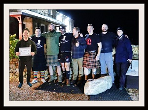 Nate successfully lifted the Dinnie Stones unassisted. His lift was witnessed by Brett Nicol, Jim & Rosemary Splaine, Lydia Nicol & the crowd of spectators and lifters in attendance.